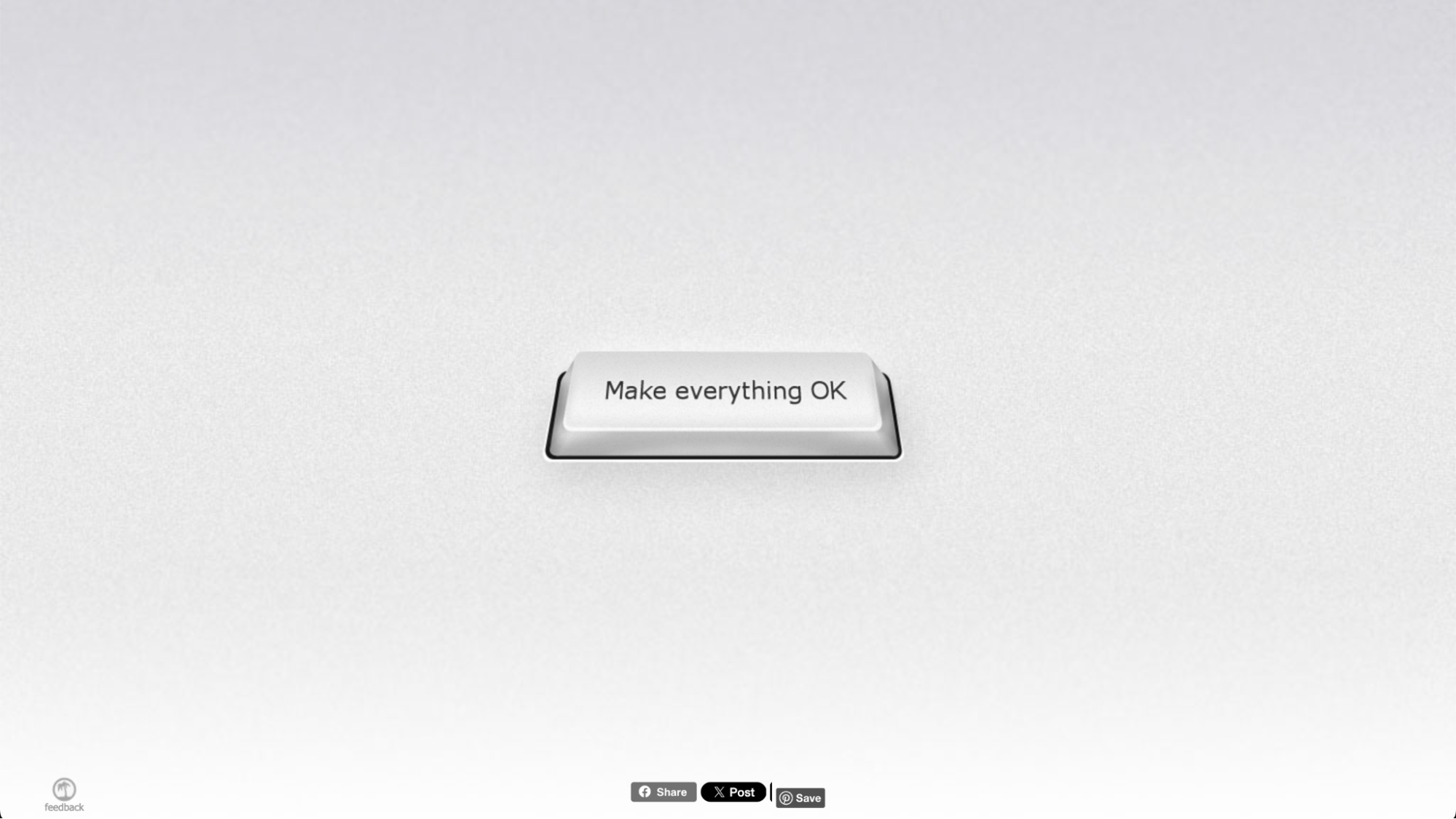 Make Everything OK is a delightfully simple website featuring a single giant button that promises to "make everything OK" with just one click. When you press the button, a playful progress bar appears, reassuring you that "making everything OK is in progress," and soon delivers the comforting message, "Everything is OK now." This lighthearted digital experience is designed to bring a moment of calm, humor, and perspective to your day, no matter what you're facing.