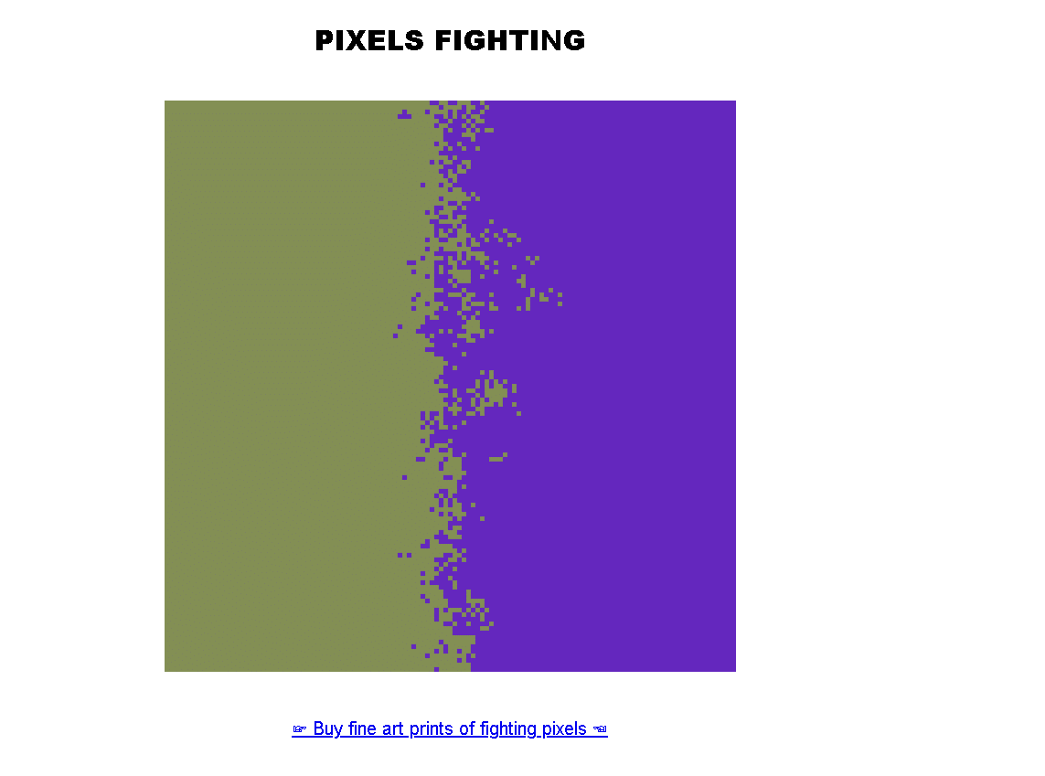 Pixels Fighting is a unique and entertaining website where you can watch colorful pixel armies battle each other in real time, providing endless, mindless fun for anyone looking to kill time or escape boredom. With just a single click, the site generates a new match between pixelated colors, letting you root for your favorite hue as the tides of battle shift unpredictably. The simplicity and randomness of each fight make it oddly hypnotic and satisfying, drawing in thousands of visitors each month who stay just to see which color will dominate next.
